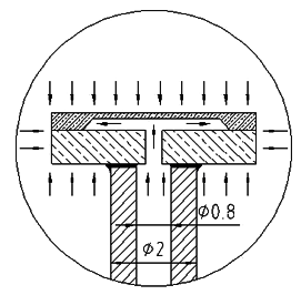 圖2 金屬電容傳感器軸向解剖圖 圖3 受工作靜壓時的工作剖面圖
