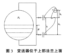 變送器位于上部法蘭上面.引壓方式和上述兩種方法一致,如圖3所示,但這種布置方式很少用到。