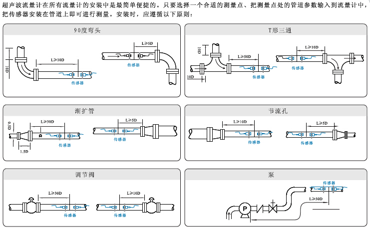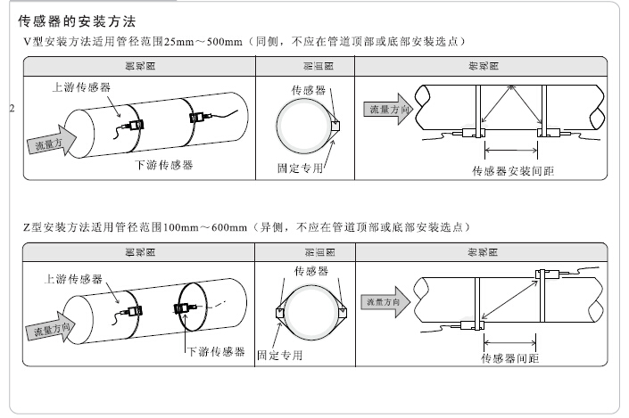 RZ-1158C超聲波流量計在所有流量計的安裝中是簡單方便的,我們中需要選擇一個恰當的測量點,通過將測量點的管道參數輸入流量計測量系統中,便可以方便地實現傳感器在管道上的流量測量。