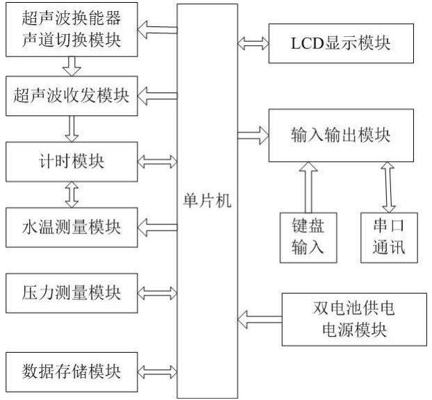 簡介:本實用新型公開了一種大口徑超聲波流量計,包括單片機、壓力測量模塊、超聲波換能器聲道切換模塊、超聲波收發模塊、計時模塊、水溫測量模塊、數 據存儲模塊和雙電池供電電源模塊;單片機控制計時模塊產生時鐘脈沖,計時模塊與單片機通信,給超聲波收發模塊和水溫測量模塊提供時鐘脈沖信號;同時單片機 通過超聲波換能器聲道切換模塊,進行超聲波流量測量的雙聲道間的切換;計時模塊接收雙聲道的超聲波收發模塊和水溫測量模塊的測量數據,并將數據傳至單片 機;數據存儲模塊用于將數據分類且分芯片存儲;雙電池供電電源模塊為單片機供電;壓力測量模塊與單片機連接。本實用新型采用雙聲道超聲波計量方式,根據時 差法測量的基本原理,完成高精度的測量。