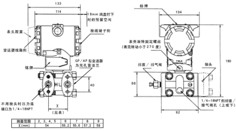 (零基準校驗范圍,參考條件下,硅油充液,316L不銹鋼隔離膜片)RZ3051-GP智能壓力變送器用于測量液體、氣體或蒸汽的液位、密度和壓力,然后將其轉(zhuǎn)換為4~20mA DC信號輸出。RZ3051-GP智能壓力變送器也可與HART手操器相互通訊,通過它進行設(shè)定、監(jiān)控。